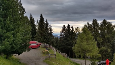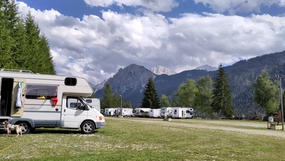 Unsere nächste Etappe führte uns nach St.Vigil in Enneberg im Pustertal südlich von Bruneck in Südtirol. Dort ist auch das Titelbild dieses Artikels entstanden. Der Campingplatz Ritterkeller ist ein weitgehend ebener Schotterplatz ohne feste Stellplatzeinteilung. Im Sommer trifft man hier nur wenige Camper, aber im Winter dürfte der Platz ziemlich voll sein. In unmittelbarer Nähe befindet sich eine Seilbahn die Skifahrer und Snowboarder in zwei Etappen mit den Bergbahnen Miara und Col Toron in das Skigebiet Kronplatz (Plan de Corones) auf 1804 m bringt. Die Piste endet dann direkt unterhalb des Stellplatzes, so dass man nach dem Skitag schnell an seinem Camper ist und die schweren Skistiefel ablegen kann.