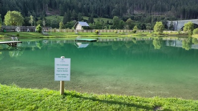Von der Steiermark fuhren wir weiter nach Hermagor Kärnten am Pressegger See im Gailtal. An den See schließen sich oberhalb und unterhalb ausgedehnte mit Schilf bewachsene Feuchtbiotope an. Ein Rundwanderweg mit vielen Informationstafeln über die Ökologie der Biotope führt vom Ortsteil Presseggen, in dem auch der Campingplatz Max liegt, durch die Biotope und um den See herum.