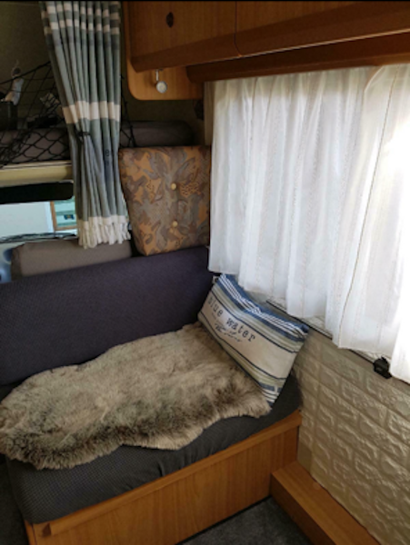 Da wir nur zu zweit unterwegs sind, ausgenommen unsere Hunde, konnten wir auf die zusätzlichen Sitzplätze auf der zweiten Sitzbank verzichten. Also haben wir den Stahlrahmen für die zweite Sitzbank einschließlich der daran befestigen Sicherheitsgurte ausgebaut, was uns einige Kilo an Gewicht eingespart hat. Der fünfte eingetragene Sitz war wohl schon einem früheren Umbau zum Opfer gefallen. An die Stelle dieser Sitze kam eine neue etwas schmalere Sitzbank, so dass wir dadurch etwas mehr Bewegungsfreiheit in der Reisenden gewonnen haben.